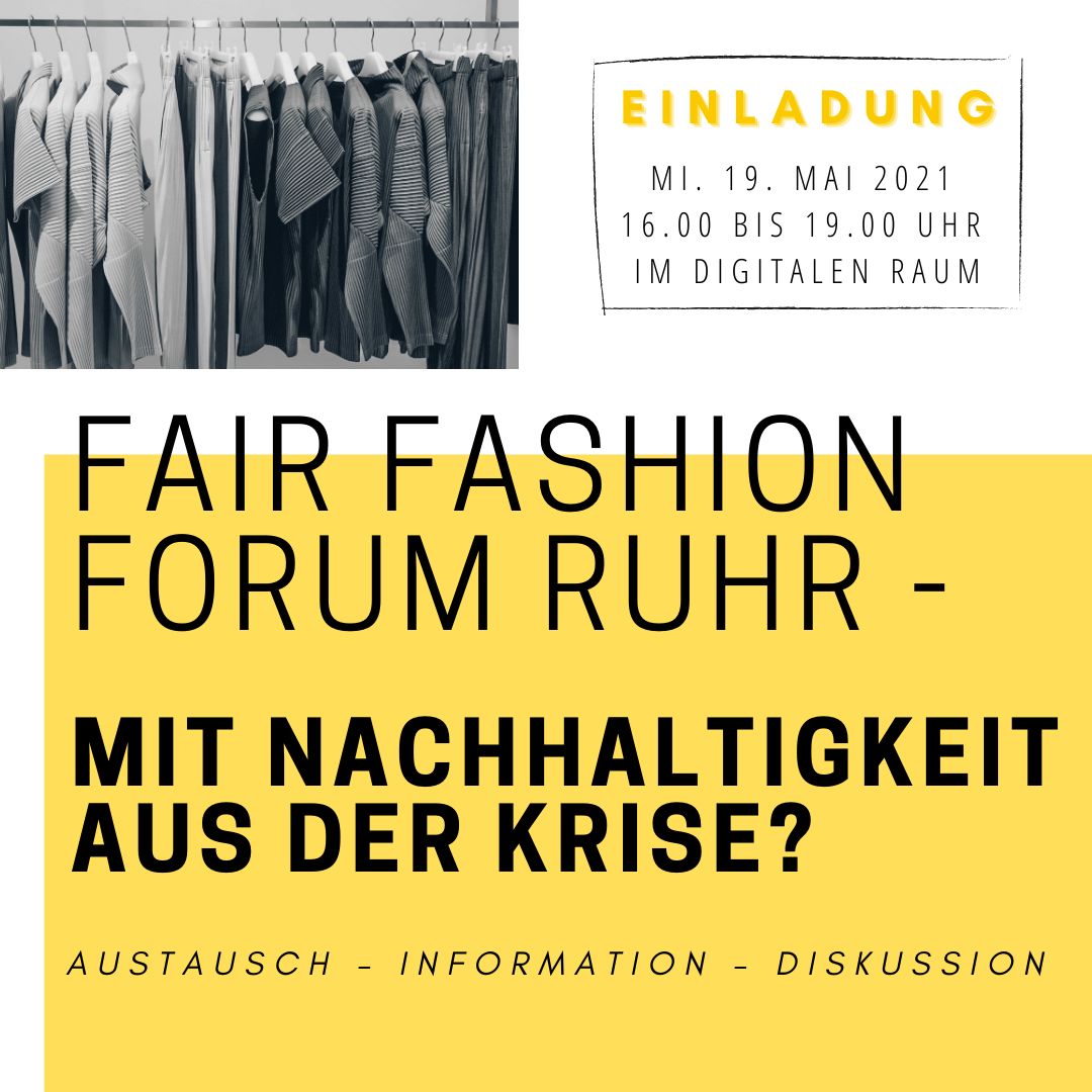 Die Aufzeichnung des Fair Fashion Forum Ruhr ist auf dem YouTube-Kanal der Fairen Metropole Ruhr zu sehen: https://www.youtube.com/channel/UCrudi8JQoPzz1kUK8SsiE_Q