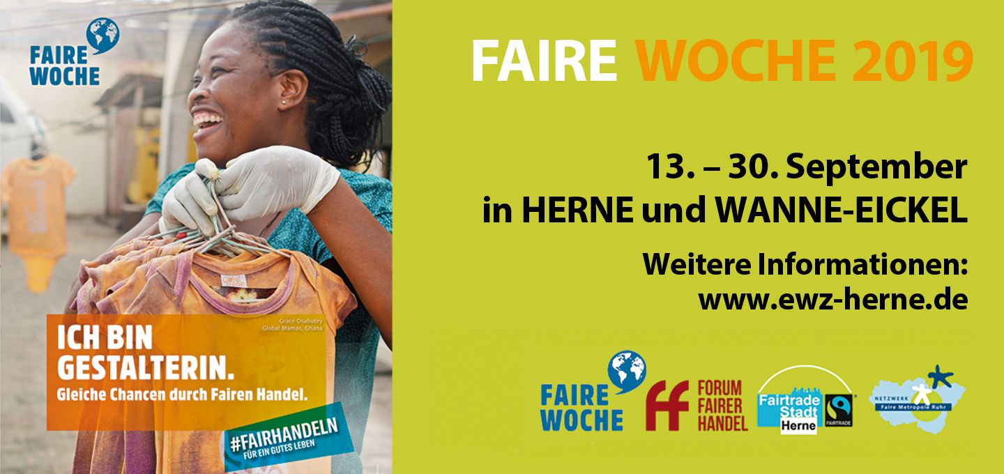 Vom 13. bis zum 30. September 2019 findet in Herne und Wanne-Eickel zum 19. Mal die Faire Woche statt. Das Motto in diesem Jahr lautet "Gleiche Chancen durch Fairen Handel".