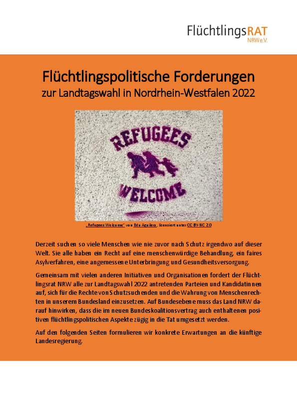 Flüchtlingspolitische Forderungen zur Landtagswahl in Nordrhein-Westfalen 2022