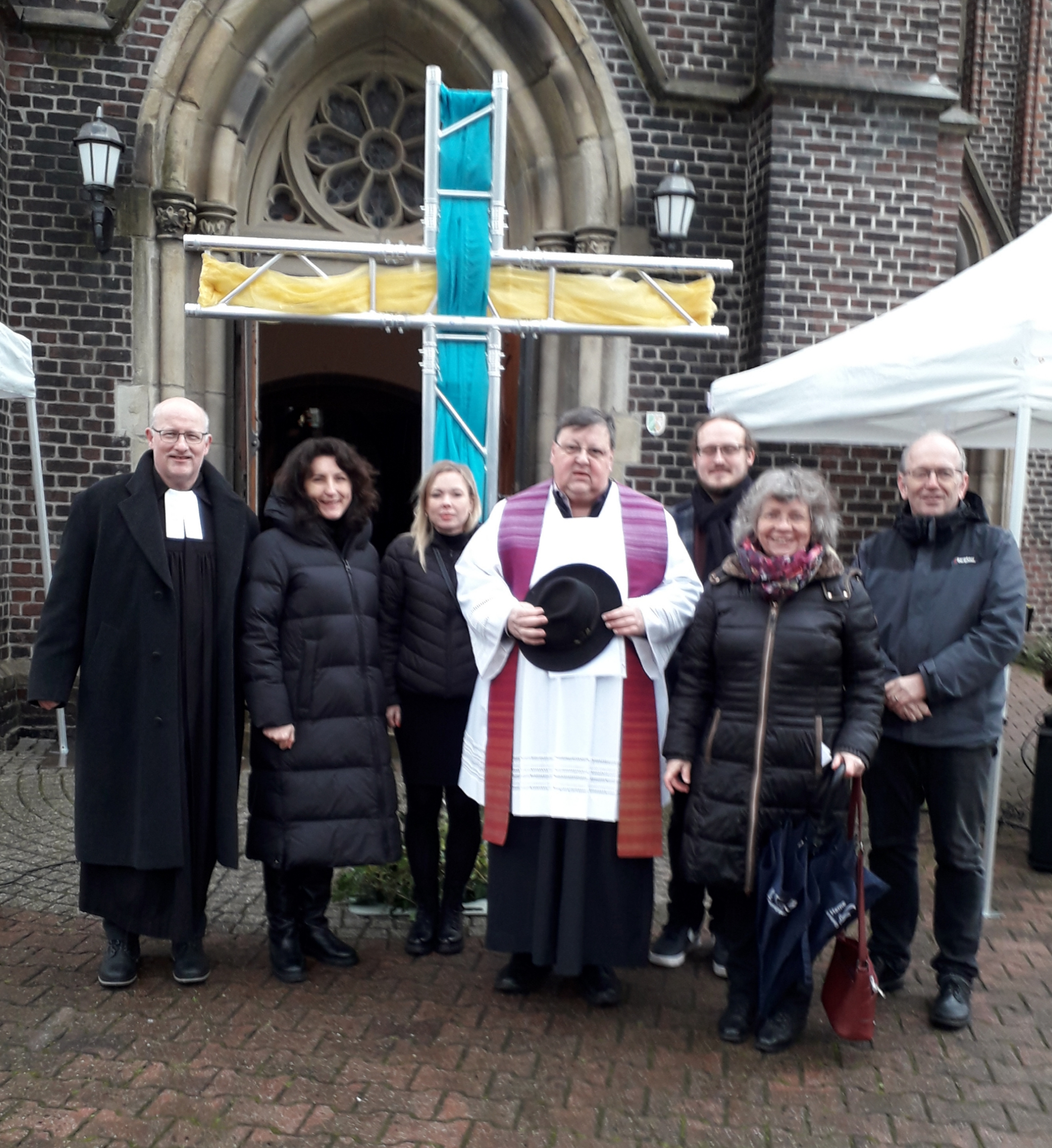 Am Jahrestag des russischen Angriffs auf die Ukraine luden die christlichen Gemeinden aller Konfessionen in Castrop-Rauxel in Kooperation mit dem Eine-Welt-Zentrum Herne zum öffentlichen Friedensgebet vor der Castroper Lutherkirche ein. Pastor Markus Ueter, Diakon Dominik Kettling und die Pfarrer Johannes Ditthardt und Arno Wittekind hielten gemeinsam mit Petra Stach-Wittekind eine Andacht mit Zeit zum Gebet, zur Stille und zum gemeinsamen Gesang. Trotz eisiger Temperaturen und Regen standen Castroper Christinnen und Christen gemeinsam mit ukrainischen Geflüchteten vor dem Kreuz, beteten, teilten ihre Betroffenheit und gaben ihrem Wunsch und ihrer Hoffnung auf baldigen Frieden Ausdruck. Bereichert wurde das Friedensgebet durch den Vortrag eines Trauerliedes einer ukrainischen Sängerin.