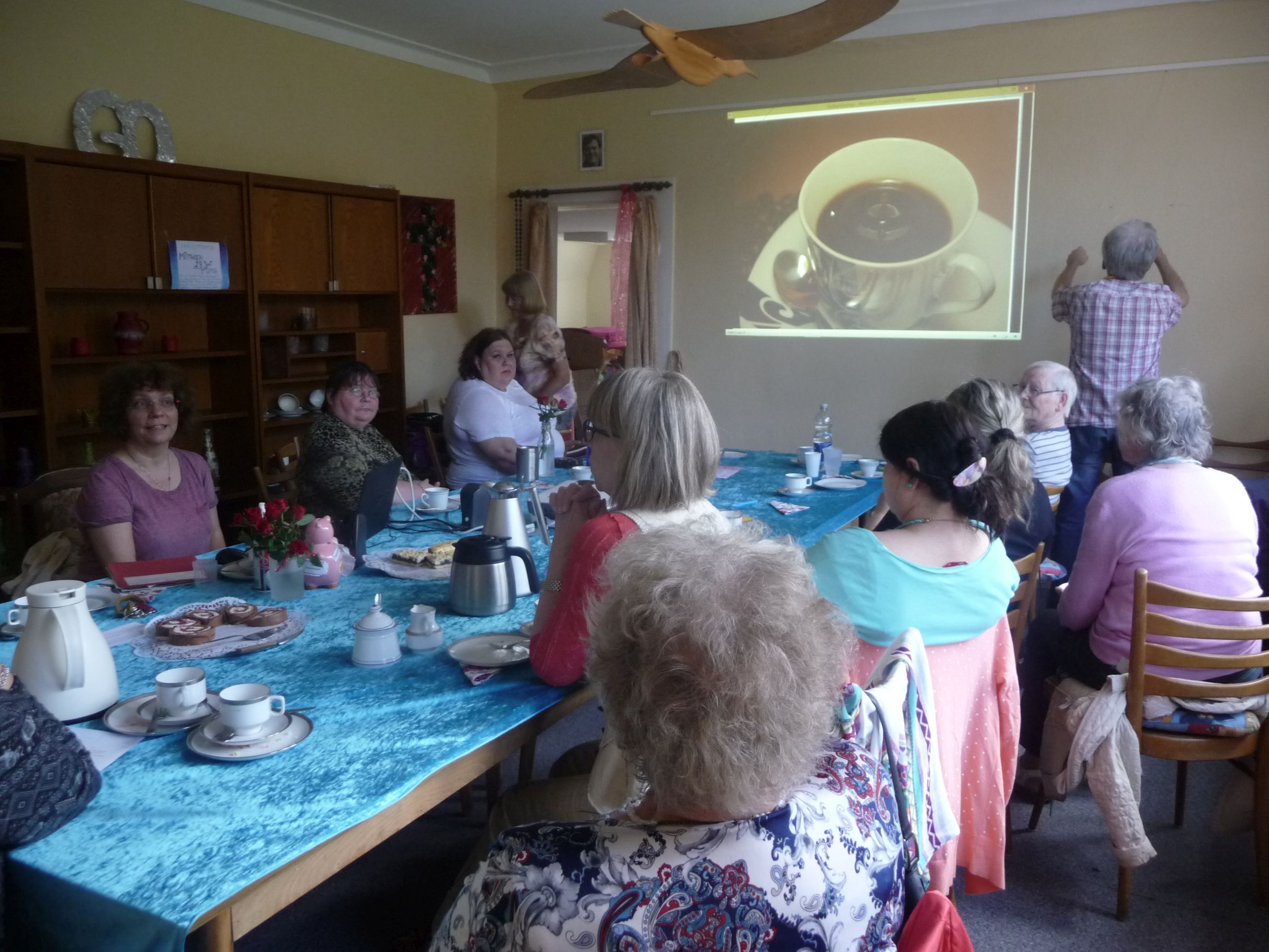Im Frauen-Café des Zeppelin-Zentrums stand der fair gehandelte Kaffee im Focus. Dagmar Spangenberg-Mades hatte Petra Stach-Wittekind vom Eine-Welt-Zentrum eingeladen. Die Gäste kamen ins Gespräch über ihre persönlichen Kaffee-Geschichten und begaben sich mit Petra Stach-Wittekind auf eine Bilder-Reise nach Nicaragua, einem typischen Anbauland. Die Kaffeepflanze ist sehr anspruchsvoll und braucht ein spezielles Klima um zu gedeihen. Vieles bei Anbau und Ernte passiert in mühevoller Handarbeit. Leider ist der Gewinn, den die Bauern und Bäuerinnen erzielen, sehr gering und außerdem den weltweiten Preisschwankungen unterworfen. Im Laufe des Nachmittags kam Fairer Kaffee in die Tassen „ der schmeckt sehr gut! Nicht so bitter wie die ersten fairen Kaffees“, wunderte sich eine Teilnehmerin. Gemeinsam wollen die Café-Besucher demnächst ausrechnen, wie hoch die Zusatzkosten für die einzelne Tasse Fairen Kaffee sind. „ Bestimmt nur ein paar Cent Unterschied. Da kann man auch fair kaufen“ so ein Teilnehmer.