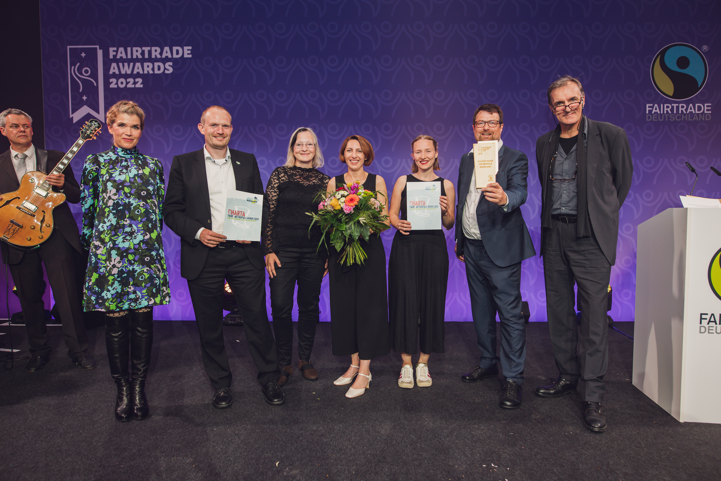 Berlin/Herne: Zum achten Mal hat Fairtrade Deutschland die Fairtrade-Awards verliehen – und der Gewinner in der Kategorie Zivilgesellschaft ist die Faire Metropole Ruhr. Die Auszeichnung, die alle zwei Jahre verliehen wird, gilt als wichtigster Preis für Akteure des fairen Handels. Durch den Abend führte sehr humorvoll und charmant Schauspielerin Anke Engelke. Zu den Laudatoren des Galaevents zählten unter anderem die Schauspieler Lavinia Wilson und Andreas Hoppe, Moderator Ralph Caspers und die amtierende Miss Germany Domitila Barros.
