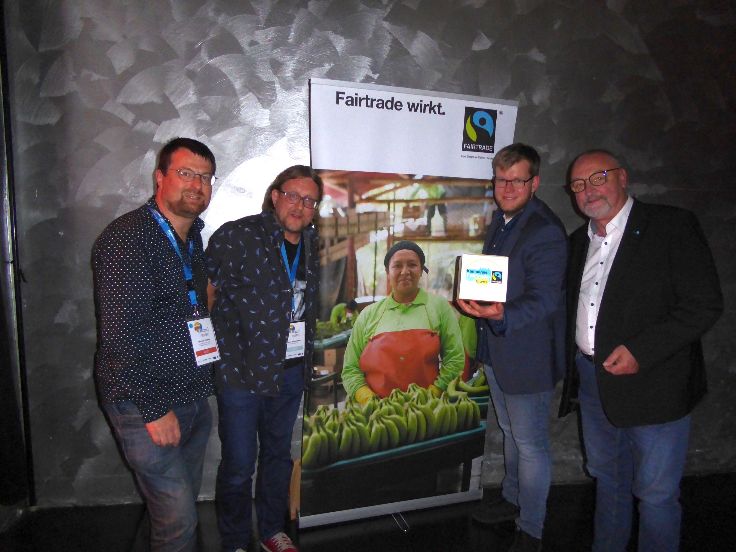 Bei der Jubiläumsfeier zum zehnjährigen Bestehen der Kampagne Fairtrade-Towns wurde die Fairtrade-Stadt Castrop-Rauxel vor großem Publikum geehrt. Der stv. Bürgermeister Hans-Hugo Kurrek stellte auf der großen Bühne im Kölner E-Werk im Gespräch mit Moderatorin Enie van de Meiklokjes die Aktivitäten zum Fairen Handel in Castrop-Rauxel vor.