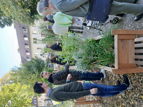 Nach dem Fairen Frühstück ließen sich die Teilnehmenden das Gartenprojekt der gfi zeigen. FOTO: FEW