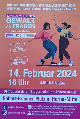 NEIN zu Gewalt an Frauen - One Billion Rising - 14. Februar 2024, 16.00 Uhr, Herne-Mitte