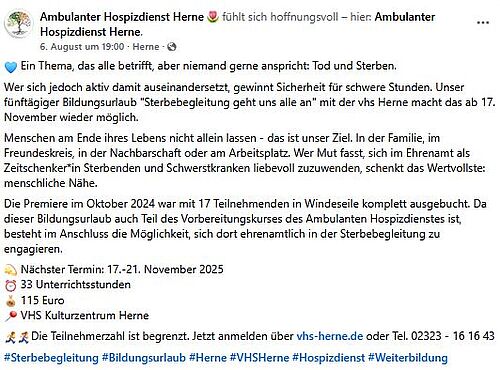 Bildungsurlaub bereitet auf Sterbebegleitung vor